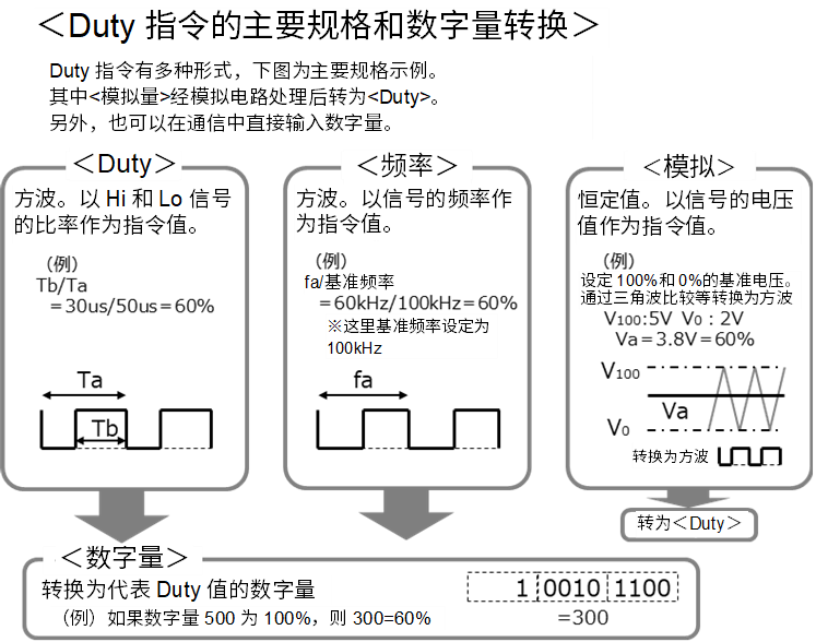输入到控制器的Duty指令有以下几种规格。这些信号在Duty指令处理模块中被转换为数字信号并使用。