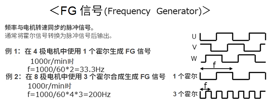输出的FG信号是用于向外部传递电机转速的信号,它是频率会随转速变化的脉冲信号。具体规格如下图所示。