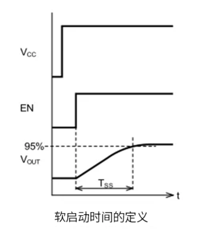 在输入电源导通(启动)时,通过在一定时间内逐步提升输出电压,可以抑制为输出电容器充电时流过的浪涌电流的最大值,这就是采用软启动的主要目的。