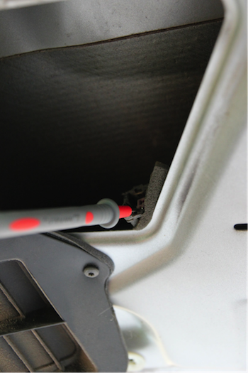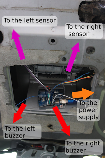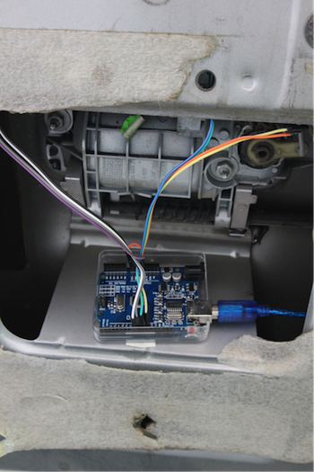 找到Arduino和Piezo蜂鸣器所在位置。在该步骤中,需拆下车门并找到一个安全的空位,用来连接电子设备。