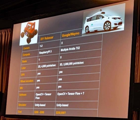 安装在很多DIY AI自动驾驶小车上的Raspberry Pi或Nvidia Jetson等微控制器开发板可以用大约100美元或更低的价格买到,摄像头等设备也可以用不到几十美元的价格买到。随着软件技术的发展,图像处理和机器学习软件已经可以在这些廉价的硬件上运行。