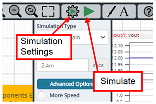仿真时间和收敛选项等仿真设置可以通过上述面的“Simulation Settings(仿真设置)”进行设置,表中列出了仿真的初始设置。如果遇到仿真收敛问题,可以通过更改具体选项来解决。在“Manual Options(手动选项)”中已经定义电路的仿真温度和各种参数。