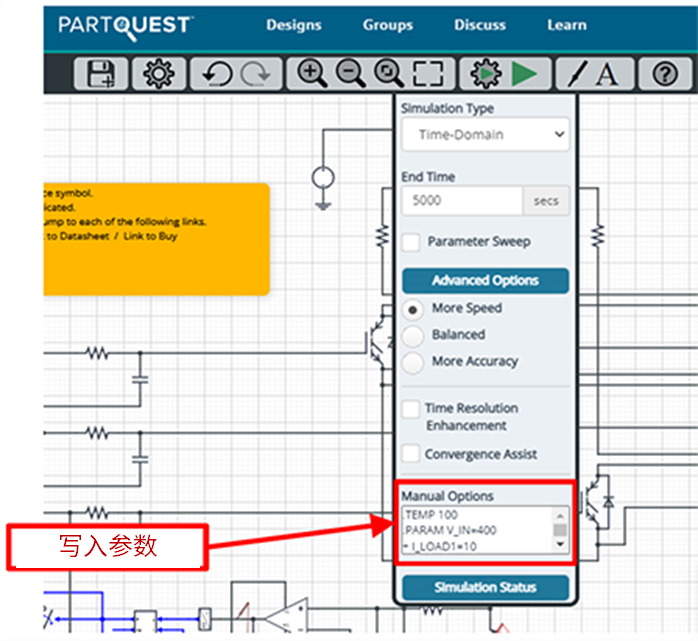 | Manual Options | .TEMP 100 | 请将电路仿真温度设定在IGBT的收敛温度水平 |