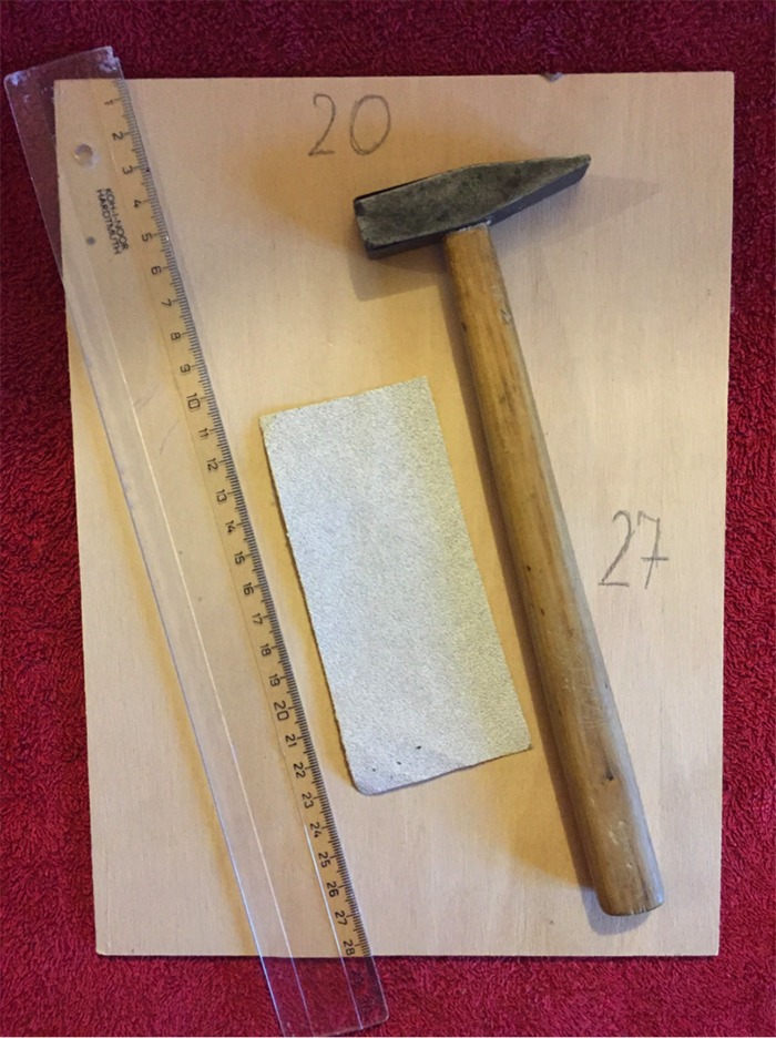为了设置倾斜点,我们还需要为钉子制作支架。我用了两块8cm x 2cm的木板,如图8所示。我还制作了一个小平台,可以将所有东西放置在一起,尺寸为12cm x 4.5cm。